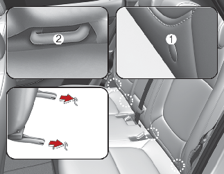 어린이 보조좌석을 설치할 때, 뒷좌석 안전 띠나 버클 등이 보조좌석 및 하부 부착구에 의해 긁히거나 손상되지 않도록 주의하십시오. 특히 뒷좌석 중앙좌석은 양 옆의 좌석보다 좁기 때문에 폭이 넓은 어린이 보조좌석을 사용하면 양옆 좌석의 안전벨트 버클을 가릴 수 있습니다. 이 때는 보조좌석의 위치를 조정하거나 버클 사용이 불가능할 경우 해당 좌석에 탑승하지 마십시오.
