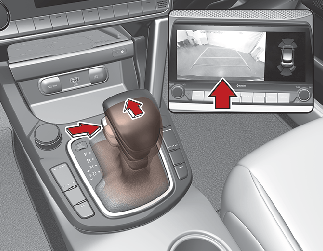 시동 「ON」 상태에서 변속 레버를 「R」 (후진)으로 선택하여 후진등이 켜진 경우에 작동합니다. 후진 시 차량 후방 상태를 인포테인먼트 시스템 화면에 보여주는 주·정차 보조 장치입니다.