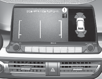 아이콘(1)을 터치하면 차량을 위에서 내려다 보는 영상이 화면에 표시되고, 주차 할 때 후방 차량과의 거리를 보여주는 편의 기능입니다.