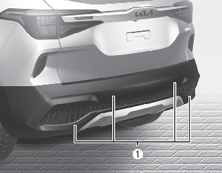 후방 주차 거리 경고는 후진 시 후방 초음파센서 (1)로부터 약 120 cm 이내에 있는 물체와의 거리를 감지하여 경고음으로 운전자에게 장애물이 있음을 알려주는 보조 장치입니다.