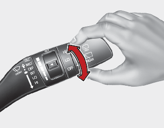 뒷유리 와이퍼는 레버를 돌리면 다음과 같이 작동합니다.