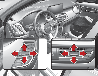 송풍구로 나오는 바람을 상·하·좌·우 원하시는 방향으로 조절하십시오.