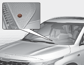 본 차에는 일사량 감지 센서가 크래쉬패드 상단에 장착되어 있습니다. 「AUTO」를 선택하면 이 센서가 일사량을 감지하여 자동으로 차안의 온도를 조절해줍니다. 일사량 감지 센서 위에 물건이 놓여 있으면 센서가 일사량을 감지하기 어려워지므로 어떠한 물건도 올려놓지 마십시오.