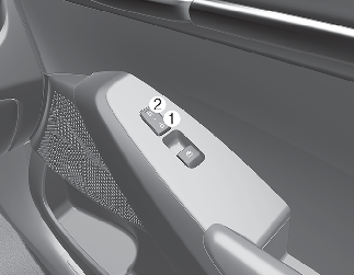 운전석 또는 동승석에 있는 잠금 해제 스위치(2)를 누르면 모든 도어가 잠금 해제 됩니다.
