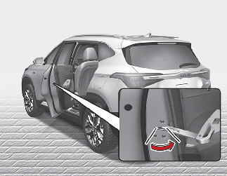 도어의 뒤쪽에 위치한 비상 잠금 장치에 비상 키를 넣고 수평 방향으로 키를 돌리십시오.