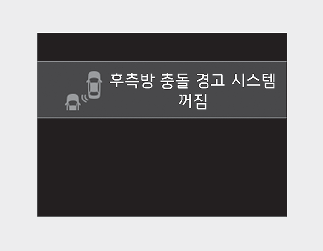 '충돌 경고'를 선택하면 후측방 충돌 경고가 켜지고 작동 준비 상태가 됩니다. 후측방으로 차량 접근 시 경고음이 작동합니다.