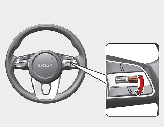 다시 크루즈 컨트롤 기능을 사용할 때는 「SET -」/「RES+」 스위치를 아래로 내리거나 위로 올리십시오.