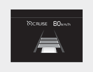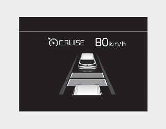 앞에 차량이 있을 경우 스마트 크루즈 컨트롤은 차간 거리를 유지하기 위해 속도를 조절하며 주행합니다. (선행 차량이 있을 경우에만 LCD 표시창 상에 앞에 차량이 나타납니다.)