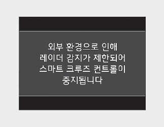하지만, 시동 후 센서 전면이 오염된 경우 또는 감지되는 물체가 존재하지 않는 경우 (개활지 등) 스마트 크루즈 컨트롤 시스템이 정상 작동하지 않을 수 있습니다.