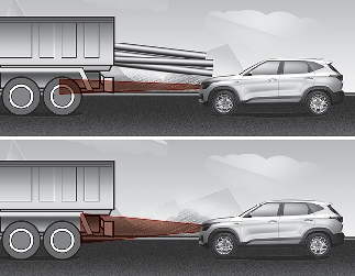 같은 차선에 있다 하더라도 센서의 감지 범위를 벗어나 있는 다음과 같은 차량은 인식하지 못할 수 있습니다.