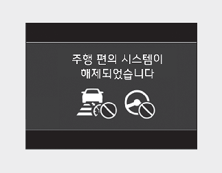 핸즈 오프 경고의 경우 도로 조건에 따라 경고가 늦게 제공될 수 있습니다. 항상 스티어링 휠을 잡고 주행하시기 바랍니다.