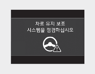 경고 문구가 표시될 경우 (일정 시간 후 꺼짐), 차로 유지 보조에 이상이 있는 것이므로 자사 직영 서비스센터 또는 서비스 협력사에서 점검바랍니다.