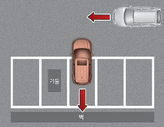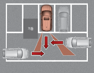 후진으로 주차하는 경우 주차 공간 후방 영역에서 주행하는 차량에 의해 시스템이 경고나 브레이크 제어를 잘못 작동할 수 있습니다. 주차 공간을 직접 확인하면서 운전하십시오.