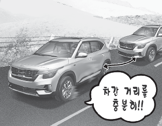 차간거리를 충분히 유지하고, 브레이크 사용시는 엔진 브레이크를 사용하십시오.
