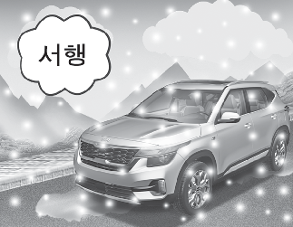 타이어 체인이나 스노우 타이어를 사용하십시오.