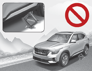4륜 구동 차량을 잭으로 들어올린 상태에서 엔진시동이 걸려 타이어가 회전되지 않게 하십시오. 접지된 타이어가 회전하면 잭에서 차량이 튕겨져 나갈 수 있습니다.