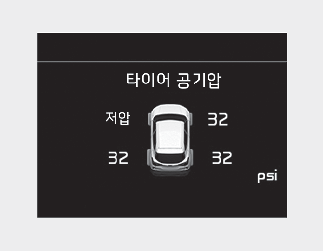 차량 출발 후 1~2분이 지나면 타이어 공기압을 확인할 수 있습니다.
