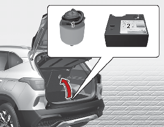 타이어 임시수리장치는 임시수리 방법이며, 방향 조절 및 차량 제어에 영향이 있을 수 있으니 80 km/h 이상의 속도로 주행하지 마시고, 주행거리 200 km 이내 반드시 가까운 자사 직영서비스센터 또는 서비스 협력사에서 타이어를 교체하십시오.