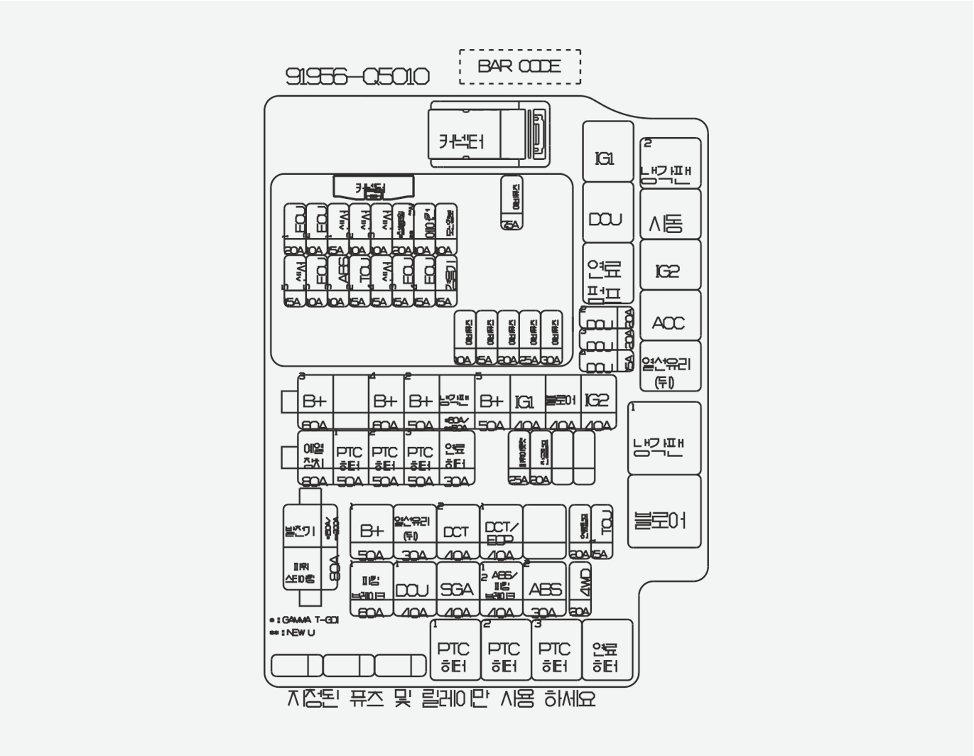 엔진룸 (퓨즈/릴레이 박스) 라벨 (운전석 쪽)