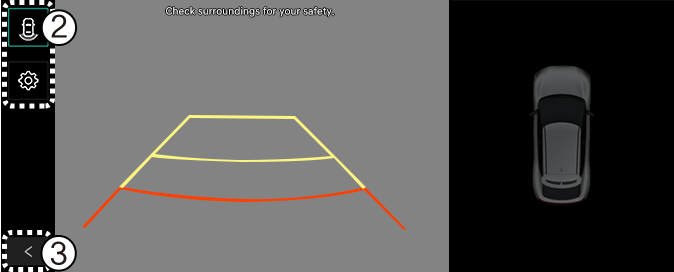 Arka park yönergeleri arka görüş ve arka üst görüşte gösterilir. Bunu görüntülemek için bilgi-eğlence sistemindeki ayarlar menüsünden Ayarlar → Araç → Sürücü Asistanı → Park Güvenliği → Kamera Ayarları → Ekran Bilgileri → Arka Park Kılavuz Çizgileri seçimi yapın. Ancak, sürüş sırasında geriye park yönergeleri arka görüşte gösterilmemektedir.