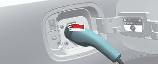 NOTASe connettore di ricarica ed entrata ricarica non sono collegati a dovere, il connettore potrebbe abbassarsi o vibrare. In questo caso, tenere la maniglia del connettore di ricarica e spingerlo fino in fondo.