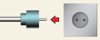 Ficha ligada a uma tomada elétrica (indicador de POTÊNCIA Verde LIGADO)