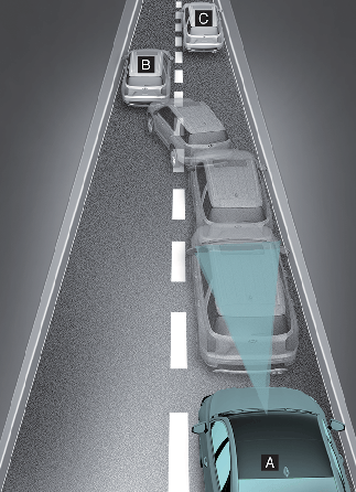 Kui teie ees olev sõiduk lahkub teie sõidurajalt, ei pruugi laupkokkupõrke ennetussüsteem kohe tuvastada sõidukit, mis nüüd teie ees on. Sellisel juhul peate ise ohutut pikivahet hoidma ning vajadusel sõidukiiruse vähendamiseks ja ohutu pikivahe säilitamiseks rooli keerama ja piduripedaali vajutama.