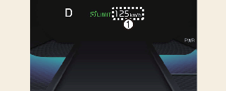 Näidikuplokil kuvatakse määratud suurim lubatud sõidukiirus (1). Kui soovite sõita eelseadistatud piirkiirusest kiiremini, vajutage gaasipedaali üle takistuspunkti, et aktiveerida kickdown mehhanism.
