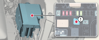 Tõmmake kahtlustatav kaitse otse välja. Kasutage mootoriruumi kaitsmekarbis olevat eemaldusvahendit (1).