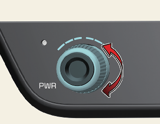 온도 조절 노브를 누르면 공조 기능을 켜거나 끌 수 있습니다. 공조 기능이 꺼진 상태에서 바람 방향 선택과 내/외기 공기 선택 기능은 조절 가능하나, 그 외의 작동은 중지되며 해당 표시등이 꺼집니다.