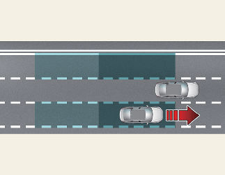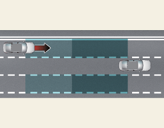 경고 영역은 자차의 속도에 따라 변경됩니다. 단, 사각 지대에 차량이 있더라도 자차가 빠른 속도로 추월할 경우 경고를 하지 않습니다.