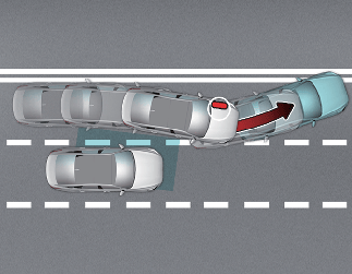 전진 출차 시 후측방에서 다가오는 차량과의 충돌 위험이 판단되면 충돌하지 않도록 제동을 도와줍니다.