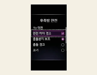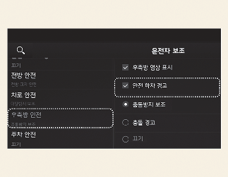 경고 시점을 변경하면 다른 운전자 보조 기능의 경고 시점도 같이 변경될 수 있습니다. 고려하여 변경하십시오.