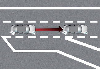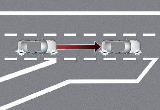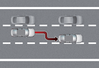 주행속도가 60 km/h 이상인 경우, 옆 차로에 근접 차량이 있으면 차로 내에서 반대 방향으로 편향하여 주행하도록 도와줍니다. 옆 차로 모두에 근접 차량이 있으면 편향하여 주행하지 않습니다.