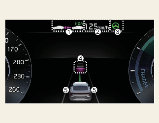 고속도로 주행 보조의 상태를 보기 위해서는 계기판을 주행 보조 모드로 설정하십시오. 계기판을 주행 보조 모드로 설정하는 방법은 자세한 내용을 참고하십시오.