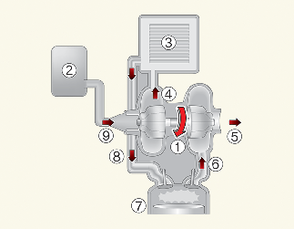 * Turbo Charger(터보차저): 엔진의 흡입공기를 터빈으로 압축해 강제로 높은 밀도의 흡기를 공급하는 장치