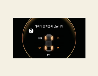 개별 저압 타이어 위치 및 공기압 표시