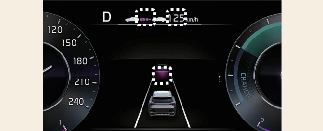 Det inställda avståndet och huruvida du har ett fordon framför dig visas.