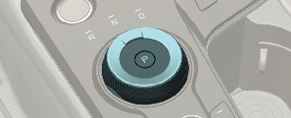 Tryck ned bromspedalen och vrid vredet till önskat läge.