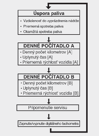 Informácie o prejdených kilometroch (palubný počítač) (pre prístrojovú dosku typu A)