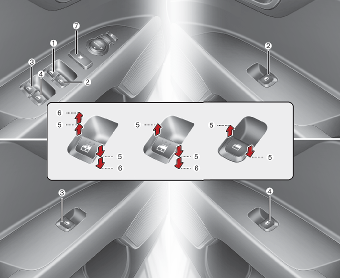 6. Automatické el. ovládanie okna nahor*/nadol* (okno vodiča)