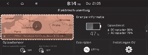 Selecteer 'EV → Map (kaart)' op het scherm.