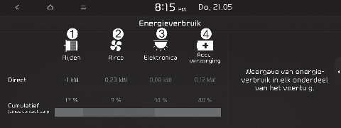 U kunt het actuele energieverbruik voor elk systeem van de auto controleren.