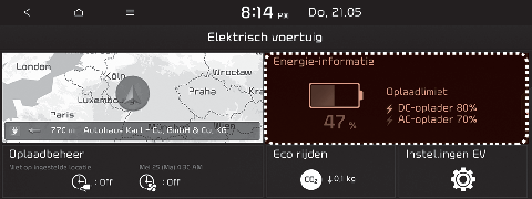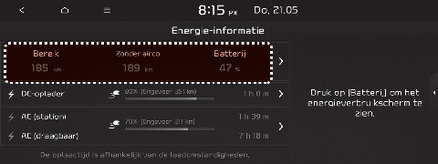 Selecteer 'EV → Energy information (energie-informatie) → Driving range, battery (afstandsbereik, batterij)' op het scherm.