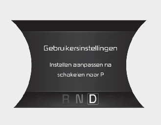 Parkeer voor uw veiligheid de auto, trek de parkeerrem aan en schakel naar stand P (parkeren) voordat u de Gebruikersinstellingen wijzigt.