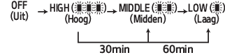 Telkens als u op de schakelaar drukt, verandert de temperatuurinstelling voor de stoel als volgt: