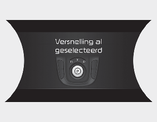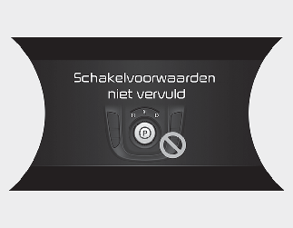 Wanneer u in de stand ‘P’ rijdt en opnieuw op ‘P’ op de selectieknop drukt, verschijnt er een waarschuwingsmelding op het lcd-scherm. Wanneer u in de stand ‘R’ rijdt en de selectieknop opnieuw linksom draait, verschijnt er een waarschuwingsmelding op het lcd-scherm.