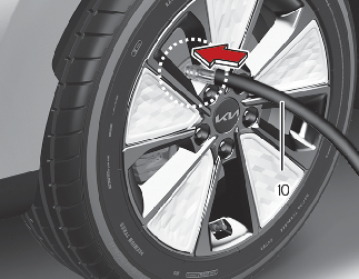 We raden u aan contact op te nemen met een officiële Kia-dealer als de band niet met de bandenreparatieset kan worden gerepareerd.