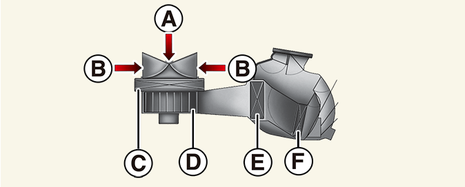 B: Recirkulovaný vzduch