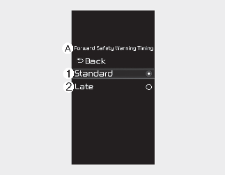 VyberteNeskorépre načasovanie výstrahy v smere dopredu, keď premávka nie je hustá a keď je jazdná rýchlosť pomalá.